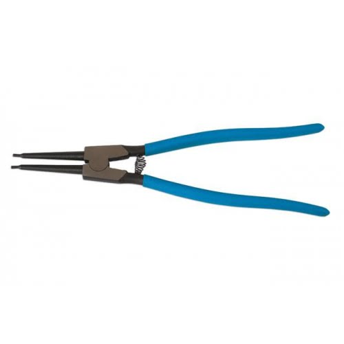 Rechte uitvoering voor indrukken en monteren van uitwendige borgveren. Lengte 175 mm. Gehard stalen stiften, opendrukkende veer en met zacht kunststof overtrokken handgrepen.